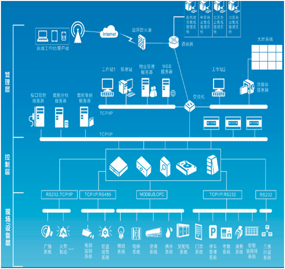 智能建筑管理系統(tǒng)IBMS是在BAS的基礎上更進一步的與通信網(wǎng)絡系統(tǒng)、信息網(wǎng)絡系統(tǒng)實現(xiàn)更高一層的建筑集成解決方案,將建筑設施內重要的系統(tǒng),如暖通空調(HVAC)、能源管理、照明、視頻監(jiān)控、安全防范、消防、生命安全和其它系統(tǒng),集成到統(tǒng)一的平臺,使相關人員可以在任何地點使用標準的 Web 瀏覽器來監(jiān)測、管理和控制各種設施、能源、以及安防系統(tǒng)等。接點IBMS具備高彈性架構,采用開放性平臺,擴展型強;自主開發(fā)各種主流品牌和協(xié)議的驅動;通過JOINTT智能網(wǎng)關分散部署;可替代部分簡單子系統(tǒng)的控制;適用于不同規(guī)模的單棟或多棟建筑。