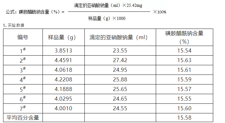 6.結(jié)論:根據(jù)實(shí)驗(yàn)表明本品含磺胺醋酰鈉約為15.58%。